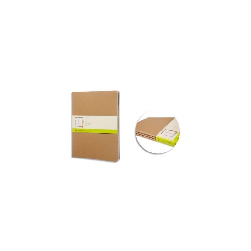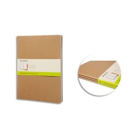 MOLESKINE Lot de 3 cahiers 120 pages unies Très Grand Format 19 x 25 cm. Couverture souple kraft